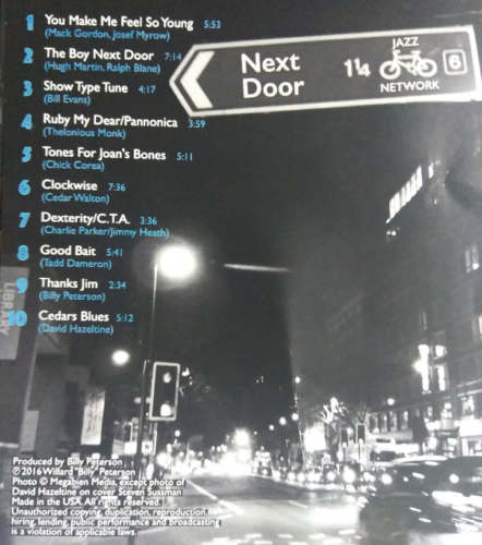 Billy Peterson David Hazeltine next door you make me feel so youngthe boy next doorshow type tuneruby my deartones for joan's bonesclockwisedexteritygood baitthanks jimcedars blues